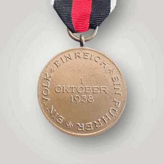 An original Sudetenland medal with original medal, die-struck in bronze complete with thin original ribbon . The medal is nice and crisp and the suspension ring is unmarked with no damage or repairs in good condition.