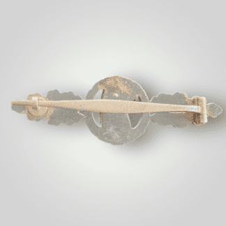 An early Luftwaffe Transport And Glider Squadron Clasp in bronze (Frontflugspange für Transport und Luftlandflieger in Bronze), constructed of bronze with the eagle overlaid in silver. The reverse is unmarked but attributed to C.E. Juncker complete with a barrel hinge complete with a tapered pin and a round wire catch, measuring 76.33 mm (w) x 25.52 mm (h) in good condition.