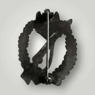 An original Infantry Assault Badge in bronze by Gablonz, constructed in zinc with bronze wash mid to late war. The reverse of the award is marked with "AS" in a triangle for Gablonz with typical crimped set up. The award has no damage or repairs in good condition.