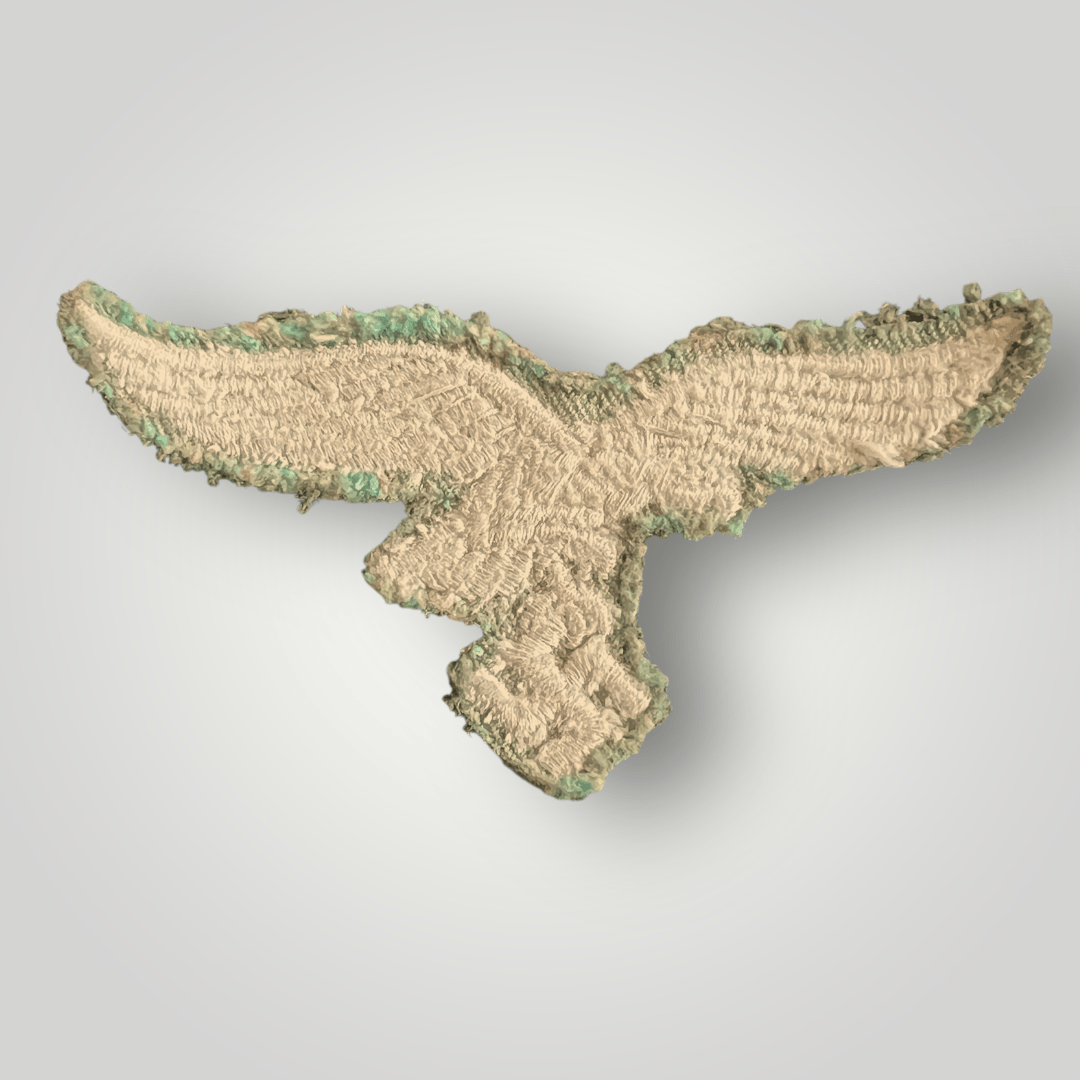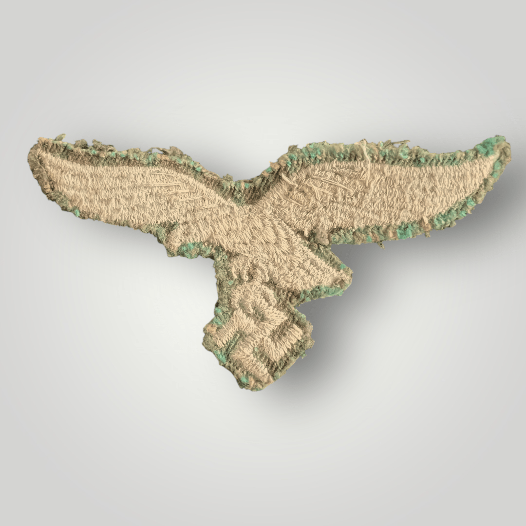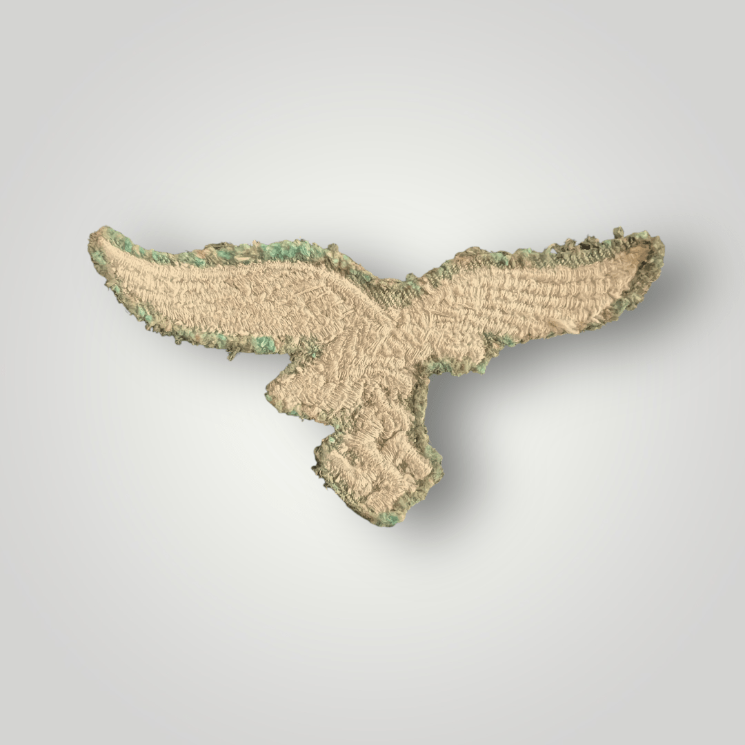 A rare Fallschirmjäger splinter camouflage smock breast eagle, machine embroidered in silver grey thread on wollen backing, measuring 85mm wide from each wing tip. This extremly rare insignia has been uniform removed in good condition.