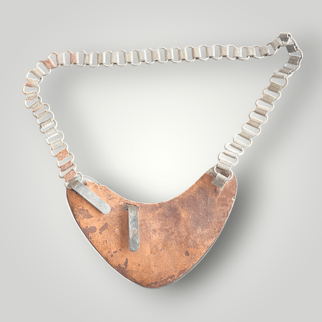 German WW2 gorgets were typically constructed from lightweight sheet metal, often aluminum, and were designed to be worn around the neck, suspended by a chain or strap. The front of the gorget was usually curved to fit the contours of the chest and was adorned with various insignias and emblems, which were either engraved, painted, or applied as separate metal elements.