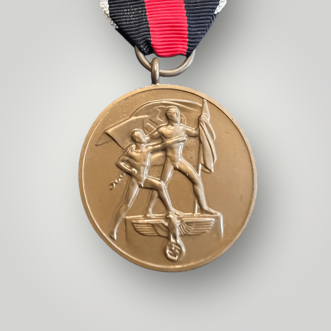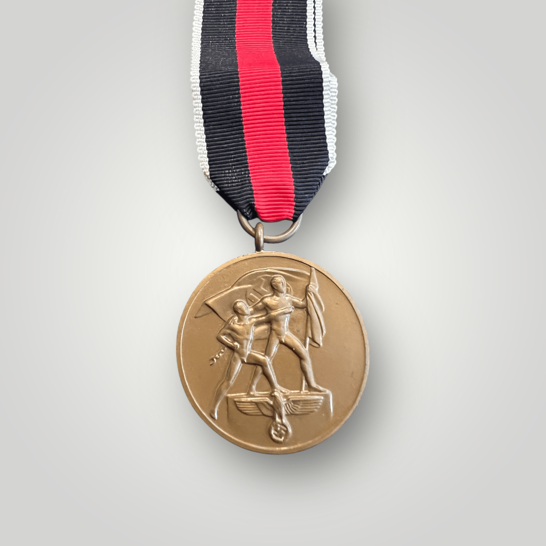 The Sudetenland Medal was founded on 1st October 1938, to commemorate the German occupation of Czechoslovakia. On this date, Germany annexed more than a third of the country and by March 14th, 1939, Germany had completed the total annexation of the country. Bohemia and Moravia were occupied and declared German “Protectorates.”
