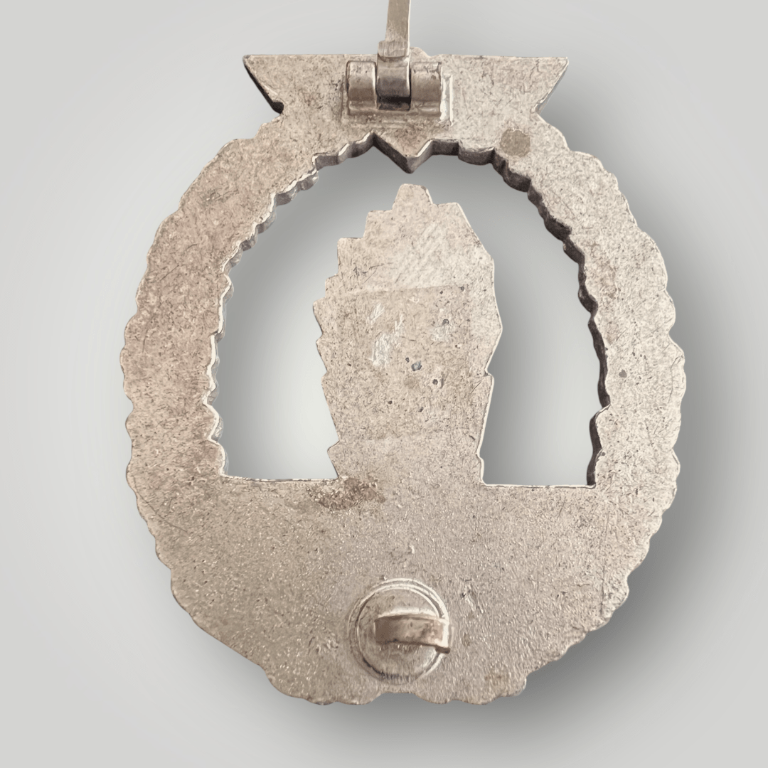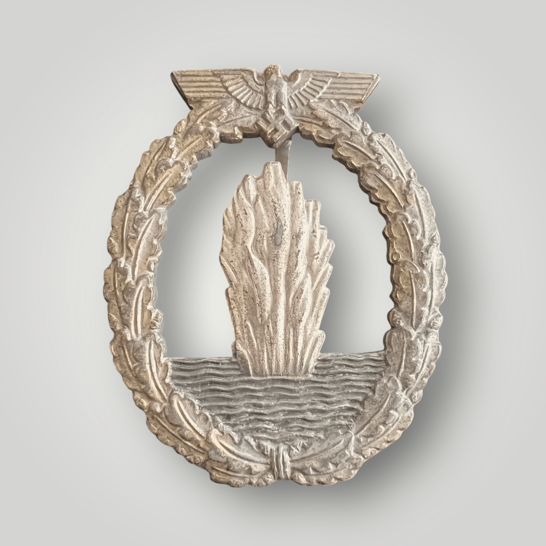 The Award was instituted on 31 August 1940 by Grand Admiral Erich Raeder, and designed by Otto Placzek of Berlin which depicts an exploding sea mine surrounded by a laurel wreath of oak leaves surmounted by national emblem of an eagle clutching a swastika (both golden coloured). The decoration was first produced in bronze and later in zinc, with many makers which vary in quality.
