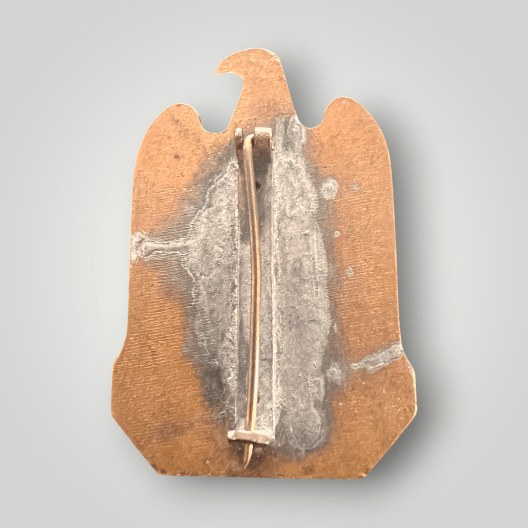 A original NSDAP Reichsparteitag Nürnberg 1933 badge, constructed in solid brass. The obverse of the badge depicts the National eagle cluching a wreated swastika in its talons, perched above the city of Nürnberg with the incription below “N.S.D.A.P Reichsparteitag Nürnberg 1933” (Nazi Party Rally Nuremberg 1933). The reverse of the badge include vertical pin assembly, which looks like it been war time repaired. Like other versions this is the heavy type in good condition.