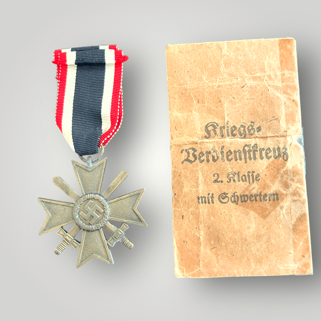 The War Merit Cross (Kriegsverdienstkreuz) was a decoration instituted by Nazi Germany during the Second World War. Established on 18 October 1939 by Adolf Hitler, the award was designed to recognise both military personnel and civilians for meritorious service to the war effort that did not involve direct combat. It served as a counterpart to the more prestigious Iron Cross, which was reserved for acts of bravery in battle.